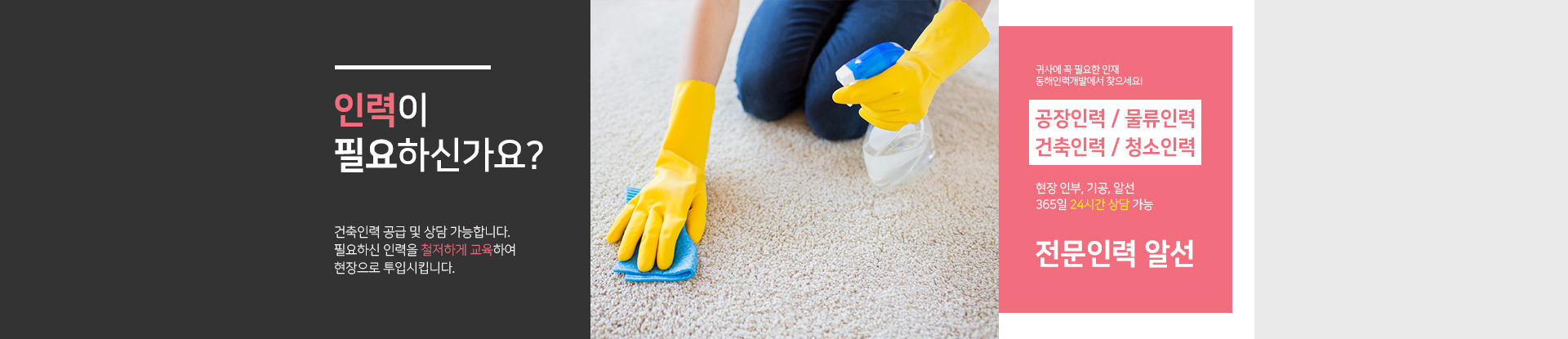 고객이 원하는 모든 직종의 인력대응이 가능하며 철저하게 교육 후 파견하기 때문에 많은 신뢰를 얻고 있습니다.